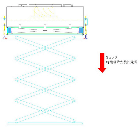 FFU安裝指導(dǎo)指南步驟4:使用升降機(jī)慢慢將FFU整體放至蝴蝶片上,如下圖所示: