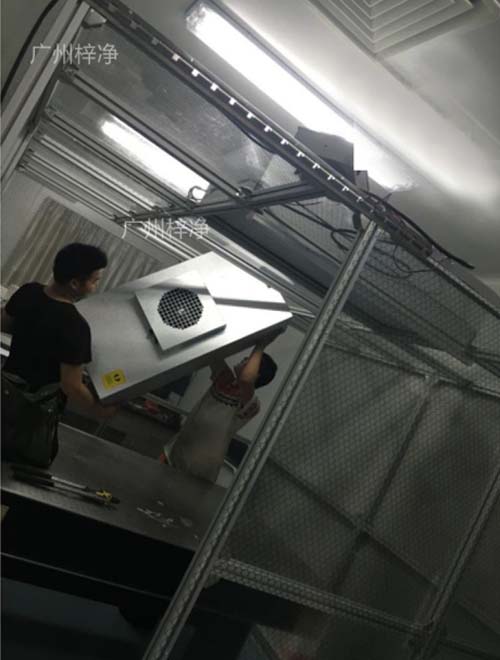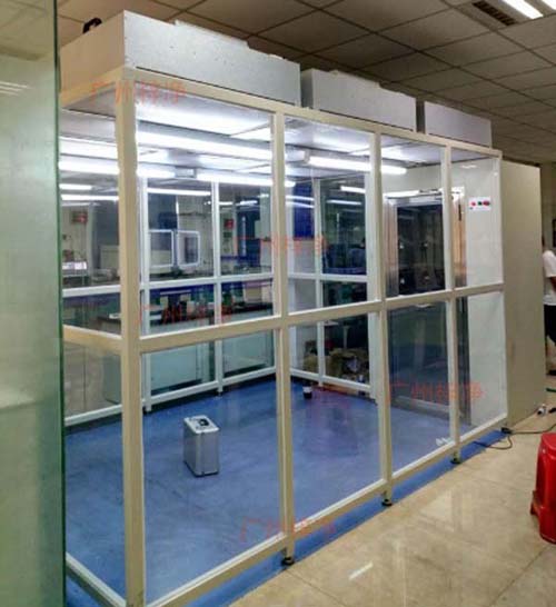 材料以鋼方通噴塑作為框架,采用風(fēng)機(jī)濾網(wǎng)機(jī)組FFU送風(fēng),凈化棚四周圍用防靜電垂簾,頂部鋪蓋密縫盲板,形成一個(gè)密縫區(qū),內(nèi)部?jī)艋?jí)別可達(dá)10—100000級(jí);特別適用于車間內(nèi)局部?jī)艋?jí)別要求高的區(qū)域,如流水線作業(yè)區(qū)域。高精確度產(chǎn)品組裝區(qū)。技術(shù)人員正在安裝千級(jí)潔凈棚千級(jí)潔凈棚|1000級(jí)潔凈棚特點(diǎn):