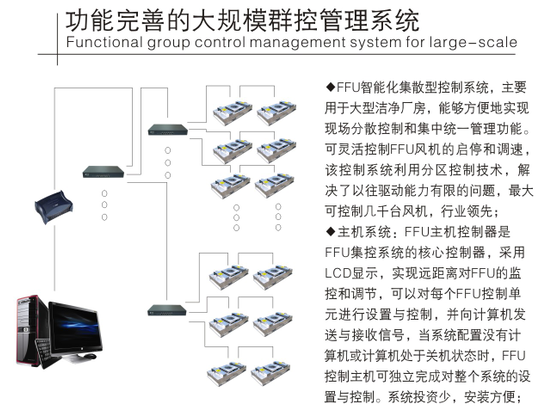 當(dāng)前生產(chǎn)企業(yè)使用FFU不是一臺兩臺的使用,而是成百上千的一起使用,因此為了管理方便,往往對FFU采取網(wǎng)絡(luò)群控的方式,而廣州梓凈今天分享的就是FFU群控網(wǎng)絡(luò)安裝方案。