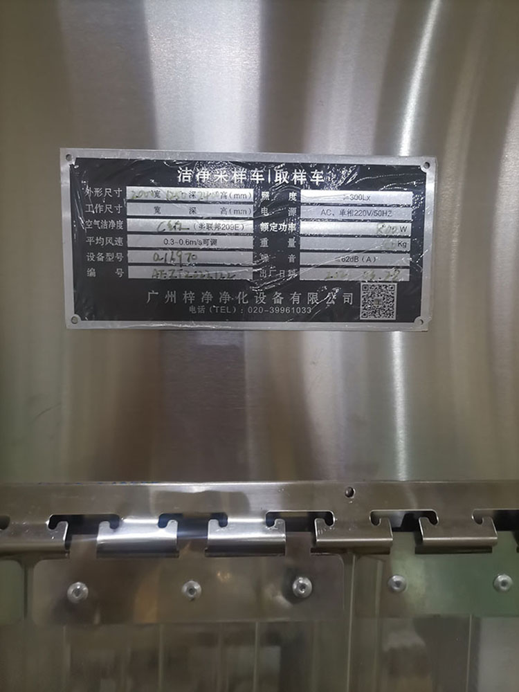 5、工作區(qū)兩側(cè)為不銹鋼擋板,前后為條形防靜電防塵垂簾,達到理想防塵效果。“梓凈”牌防爆潔凈采樣車名牌6、配一臺大風(fēng)量低噪聲進口風(fēng)機0.165KW,確保風(fēng)速大于0.45m/s;