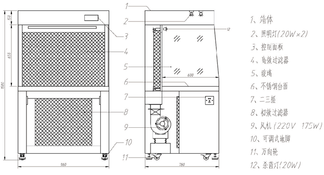 >>輔助配置:配潔凈日光燈,配一盞紫外線殺菌燈,配萬(wàn)向腳輪;