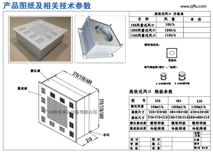 送風(fēng)口尺寸680×680×250高效過濾器尺寸:610×610×69額定風(fēng)量1000m3/h;