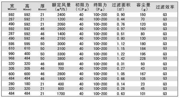 用戶選購指南-板式初效活性炭過濾器技術(shù)參數(shù)