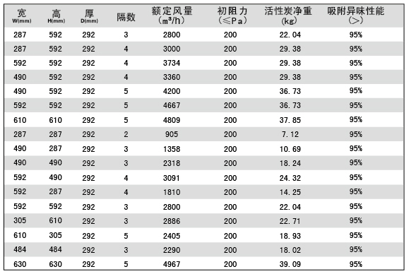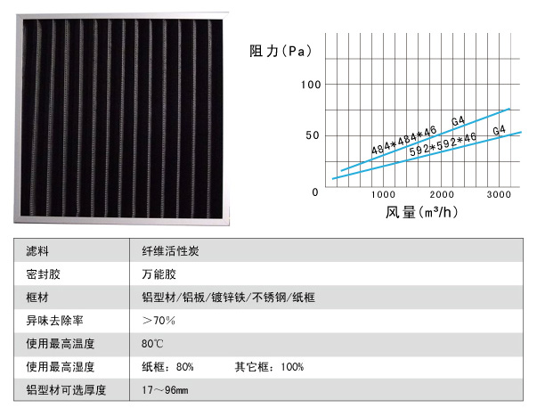 板式初效活性炭過濾器技術(shù)參數(shù)