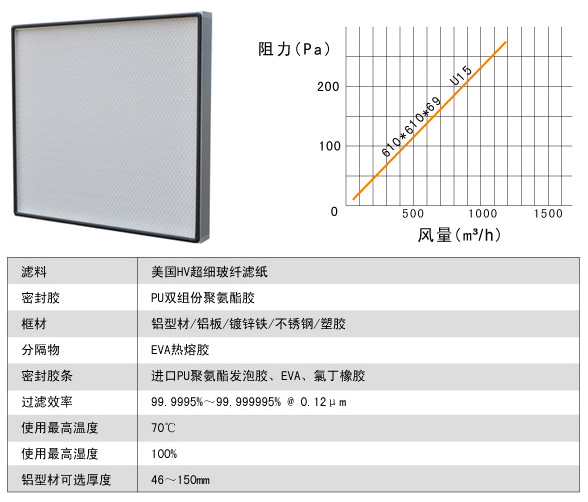 過濾效率:99.99%-99.995%(H13、H14) MPPS