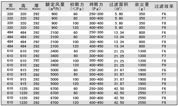無隔板中效過濾器技術(shù)參數(shù)-用戶選購指南