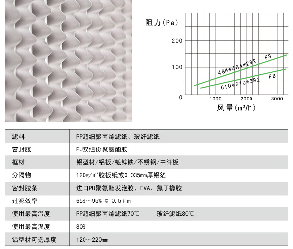 >>多片無隔板濾芯組成V型結(jié)構(gòu),安裝在塑料的框架中,該高效過濾器使用低阻力、防水、阻燃的超細玻璃纖維濾紙。外框和法蘭由重量較輕的聚丙乙烯制成,低重量有助于搬運和安裝。