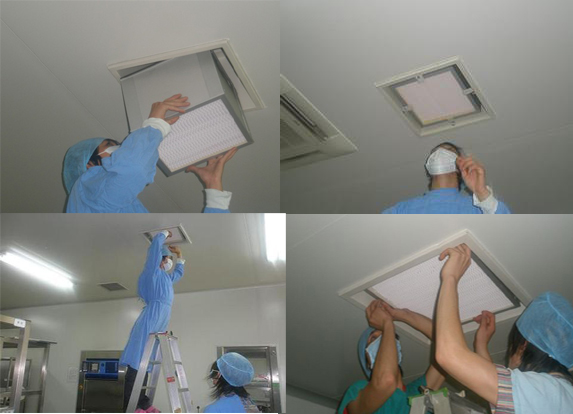 4.高效過濾器安裝前,必須對潔凈室進行全面清掃、擦凈,凈化空調(diào)系統(tǒng)內(nèi)部如有積塵,應(yīng)再次清掃、擦凈,達到清潔要求。如在技術(shù)夾層或吊頂內(nèi)安裝高效過濾器,則技術(shù)層或吊頂內(nèi)也應(yīng)進行全面清掃、擦凈。